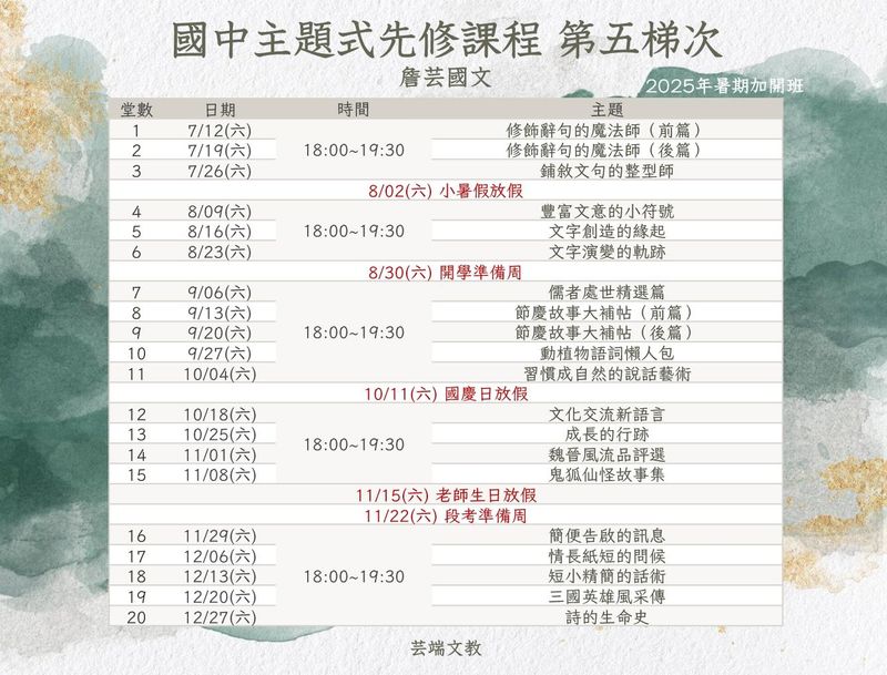 - 今年國一生,暑假開班時,國一上學期徹底學好未來六年國文基礎常識!