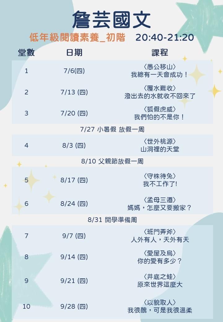 許沐老師為低年級的孩子們設計了閱讀素養成語典故課程