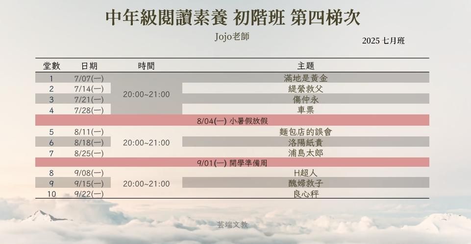 中年級閱讀素養初階-影片課程 (第四梯次)