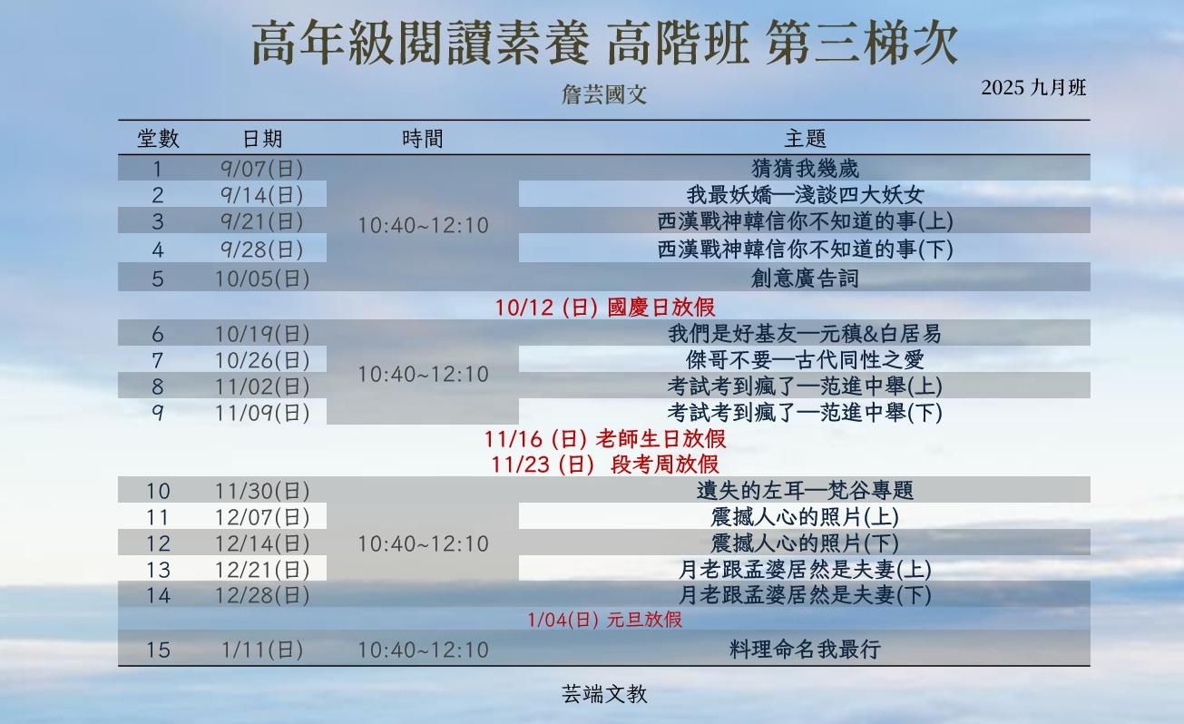 曾與 翰林雲端學院 及多家大型補習班合作國文線上課程(國高中升學、國營公職國文、閱讀素養專班)。