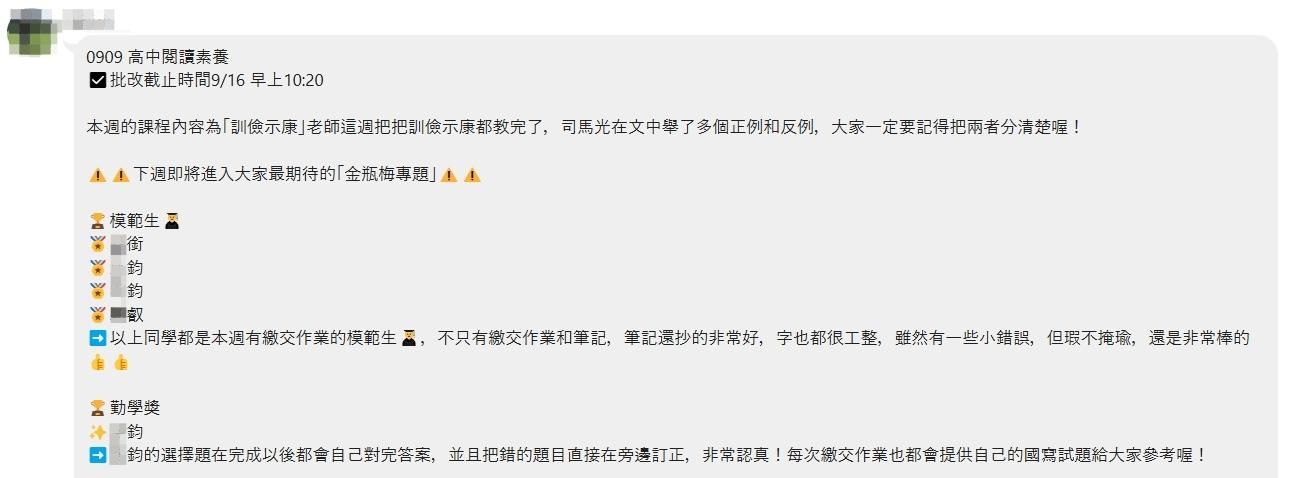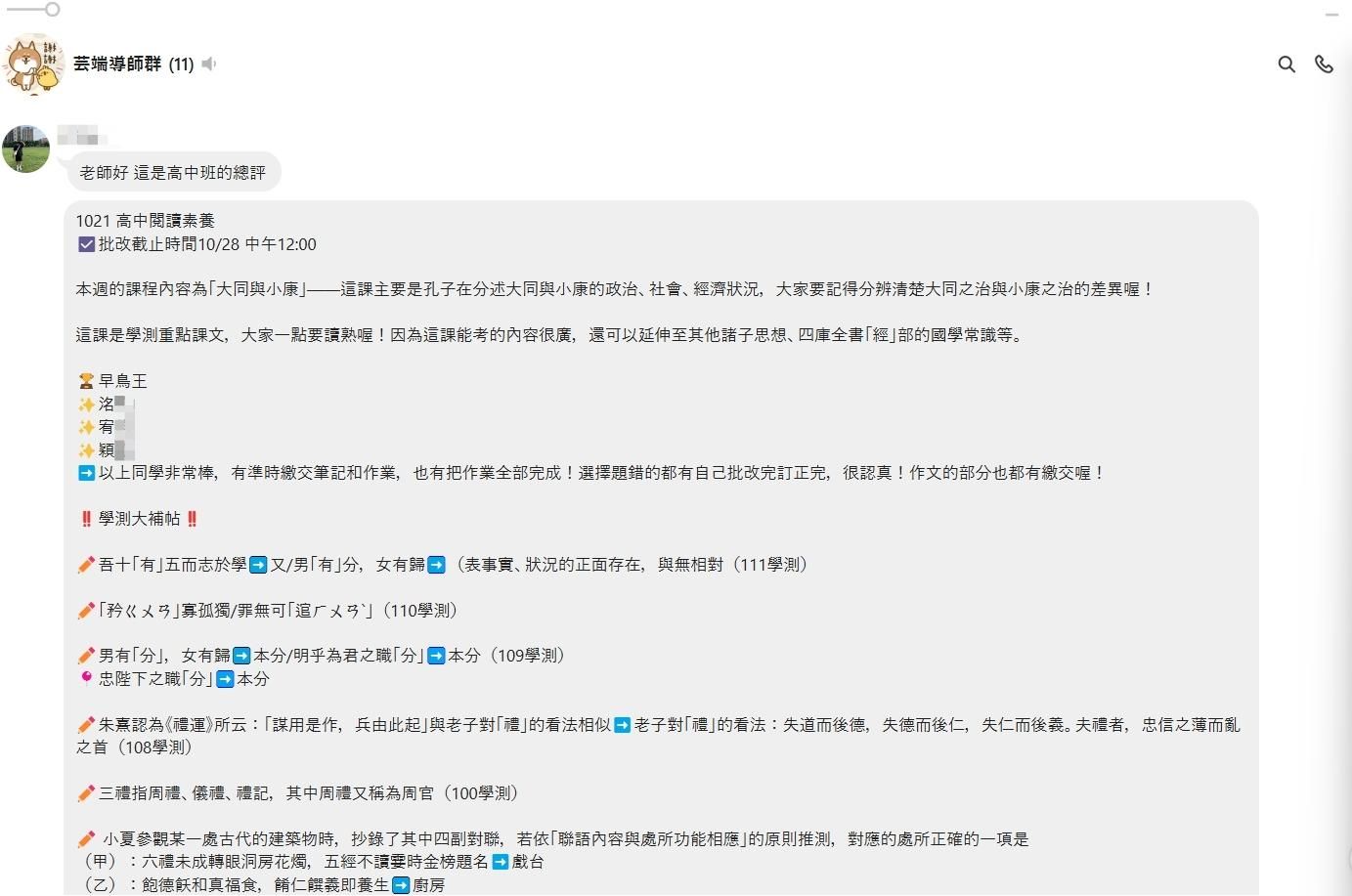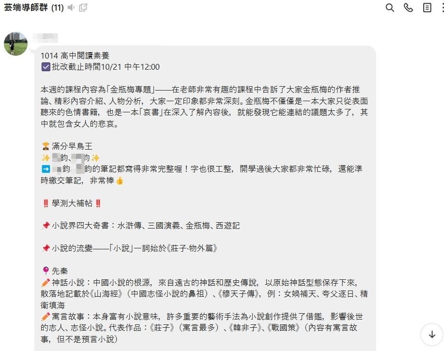 ( 下方圖片有"芸端導師群"運作的導師批改作業總評就是該班 )
