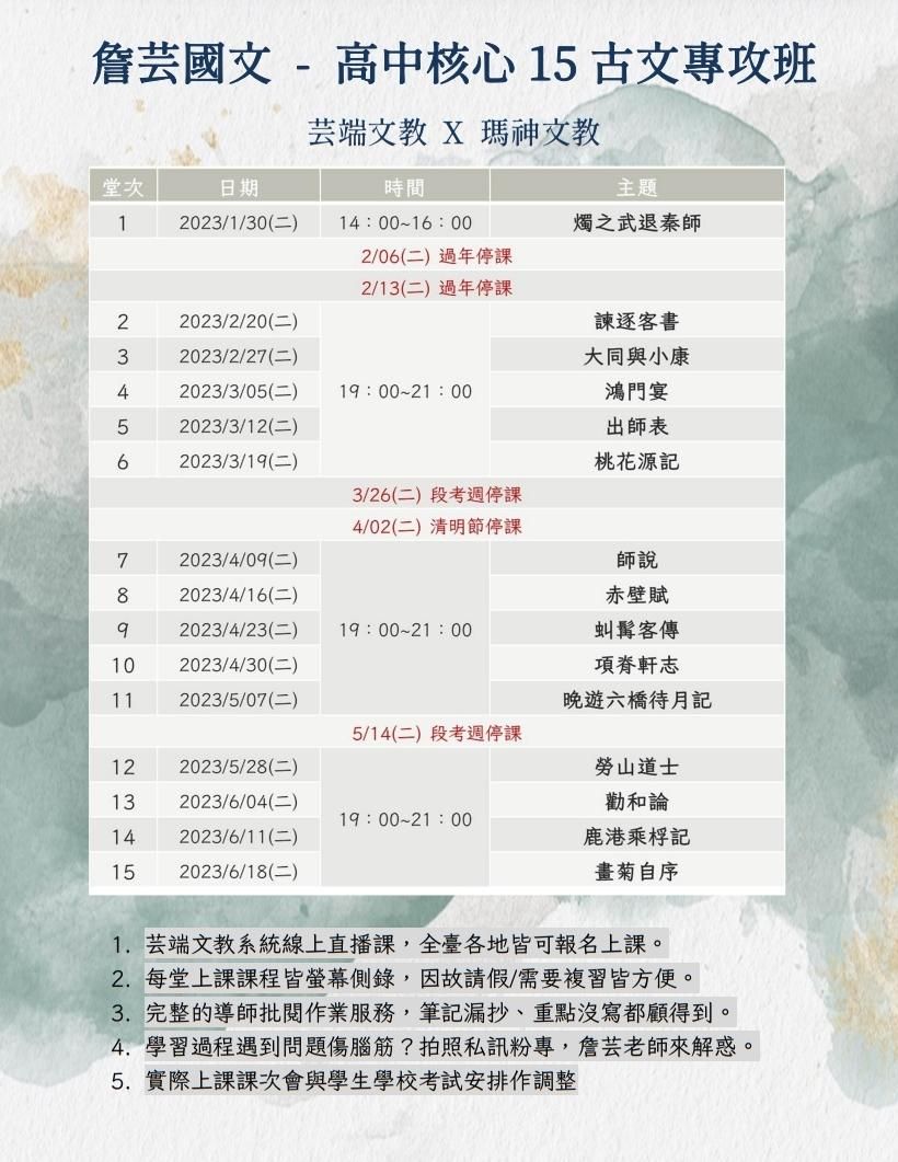 很榮幸能夠受到瑪神文教的邀請,共同啟動這門專為高中生量身打造的高中核心15古文專攻班!