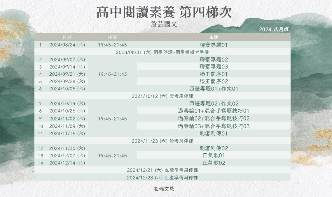 - 學生點餐:同學們會點一些經典的文章,學校課本內沒有,學測也不一定會考,就是純粹挑戰增加實力,非常硬核!
