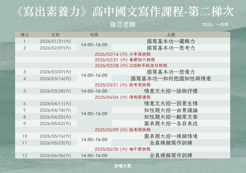 【芸端文教】設計的這套寫作特訓課程,從三個階段帶領學生穩定提升: