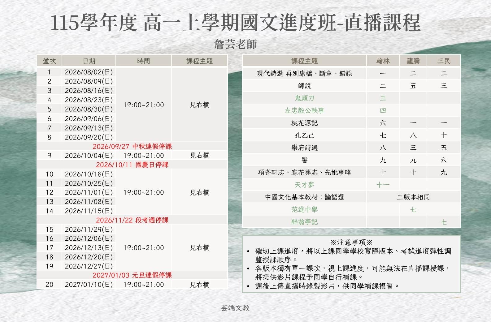 高一上學期國文進度直播班