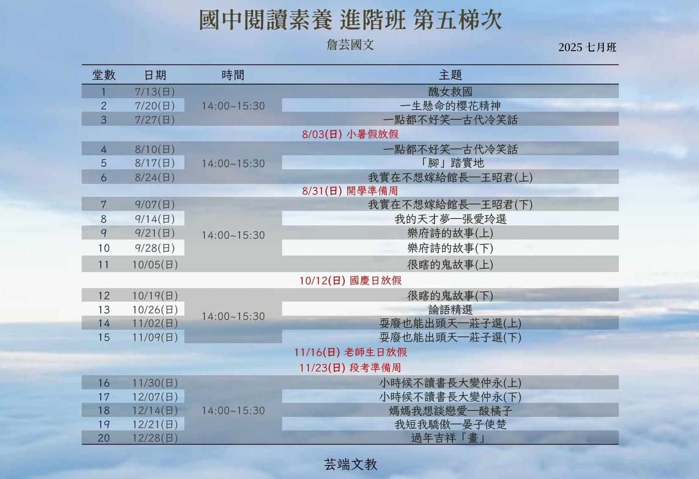 用學校課程之外、而大考常會延伸考出來的課題,教導成語、典故、文章、文言文閱讀能力,並且在課程中盡可能讓孩子訓練國寫能力。