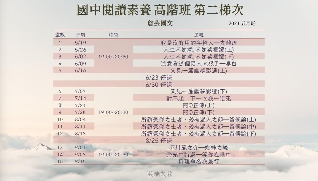 【芸端文教-詹芸老師】國中高年級閱讀素養﹝高階班﹞開課啦!