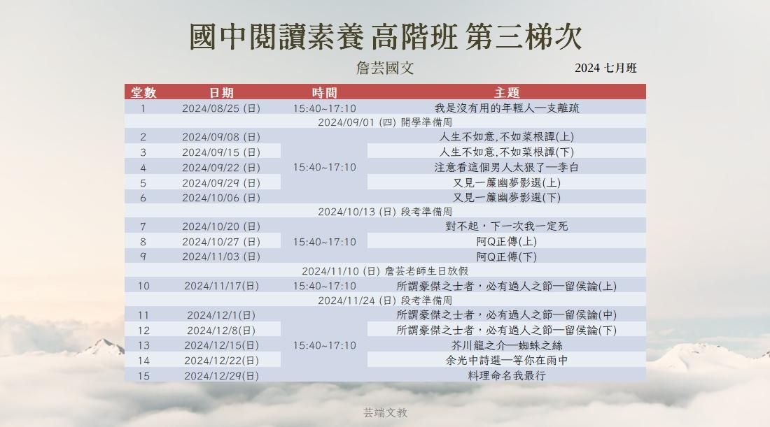 【芸端文教-詹芸老師】國中高年級閱讀素養﹝高階班﹞開課啦!
