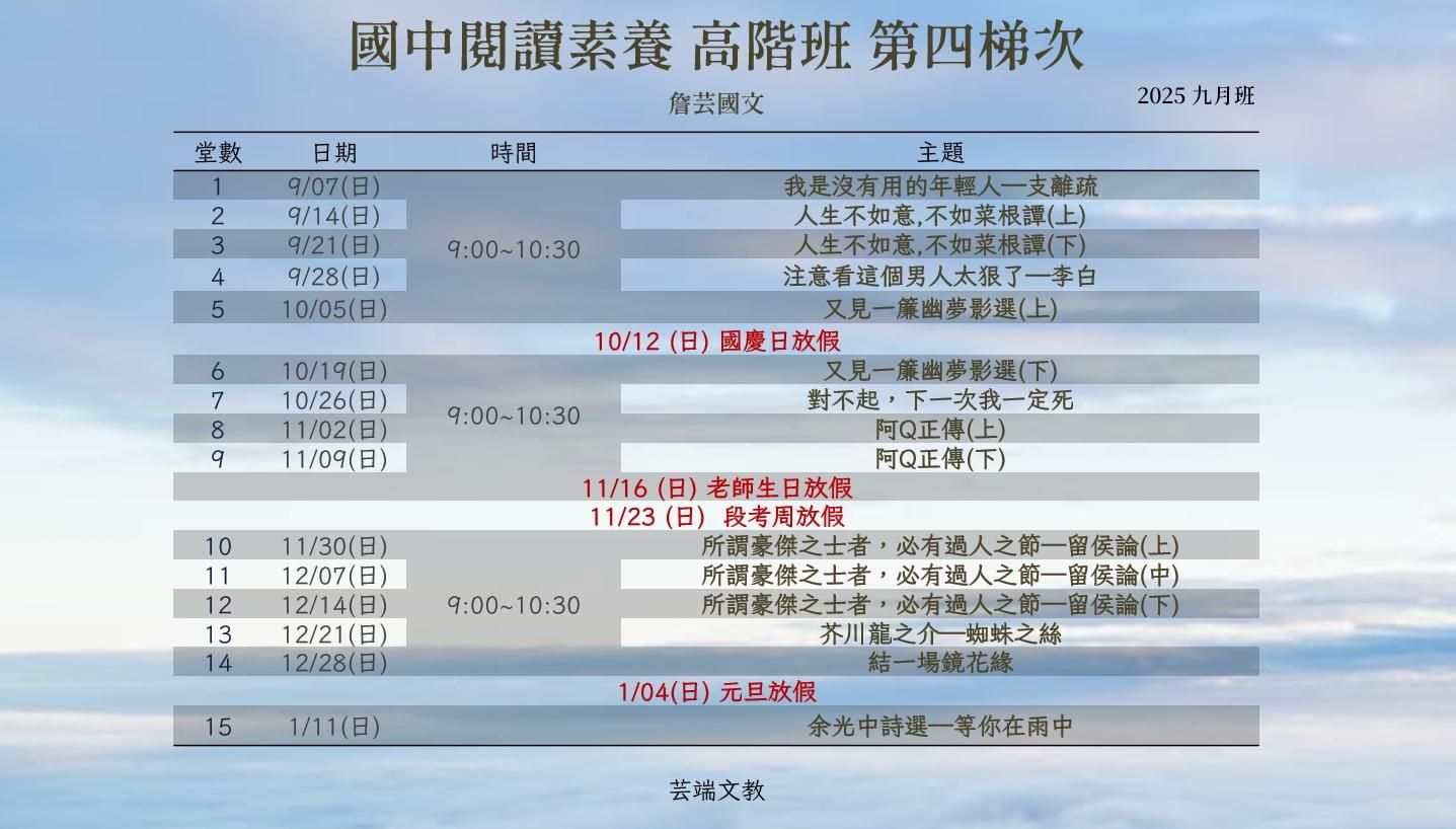 【芸端文教-詹芸老師】國中閱讀素養﹝高階班﹞開課