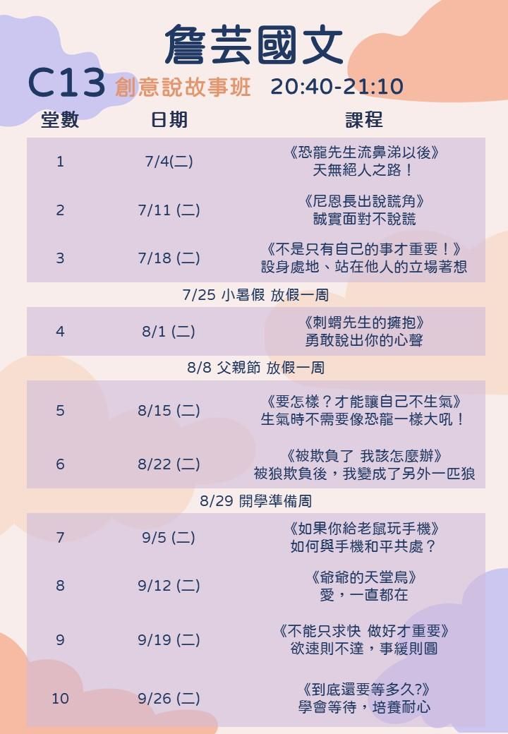 註. 此課程無紙本講義,每堂課會有一頁學習單,請家長協助列印。